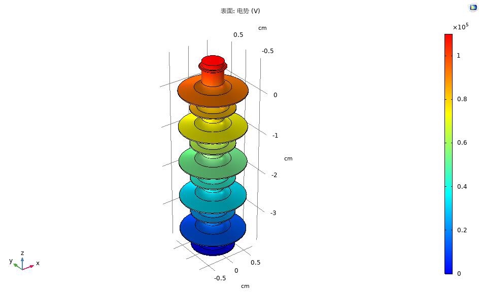 comsol电力110kV绝缘子电场计算模型,通过绝缘子电场计算,可以得到绝缘子整体电势和电场分布